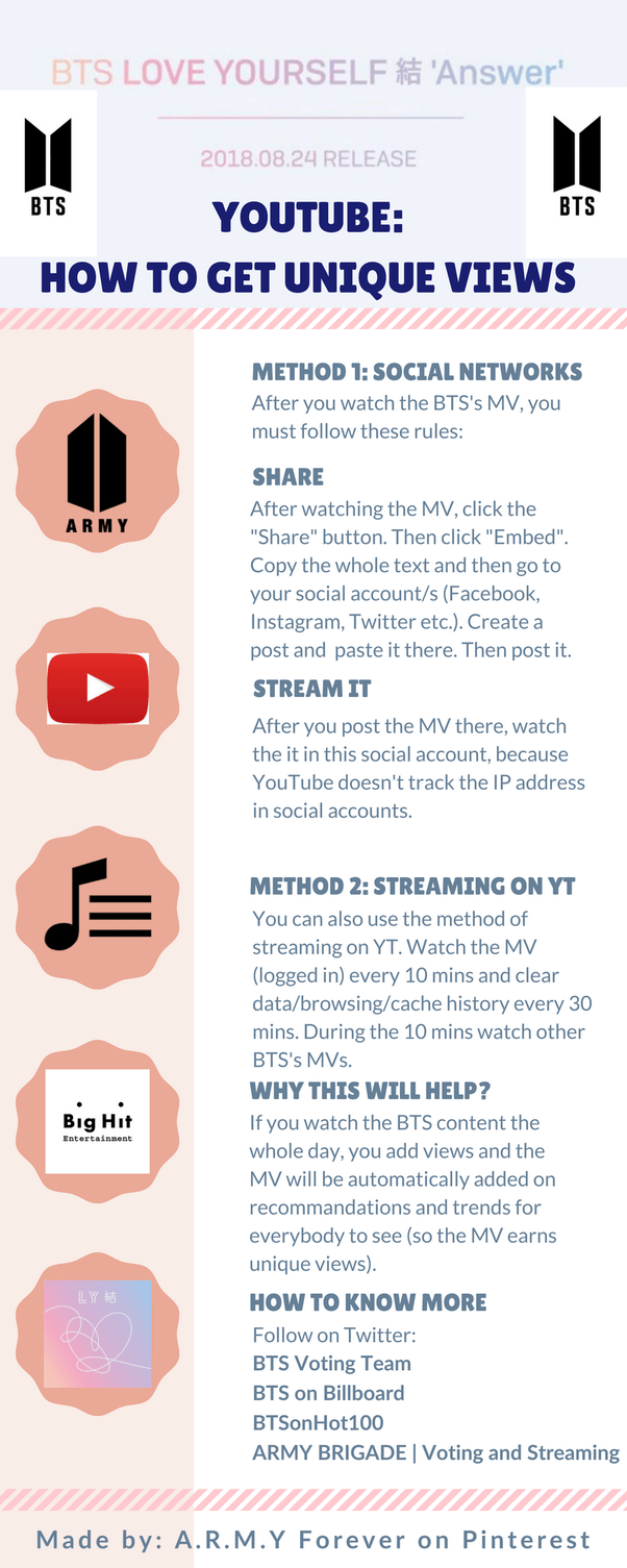 Monitoring bts mv views / youtube streaming guides // bbmas 2017 street team / btsviews@gmail.com / check pinned for mv streaming. Let us all stream butter properly everyone, so that we can beat our own records! Take this as a sign to stream harder and keep the pace going!! Already we have broken so many records of dynamite! Here's how you should stream butter! Our "how to stream," "how to purchase," and "music video streaming guide".